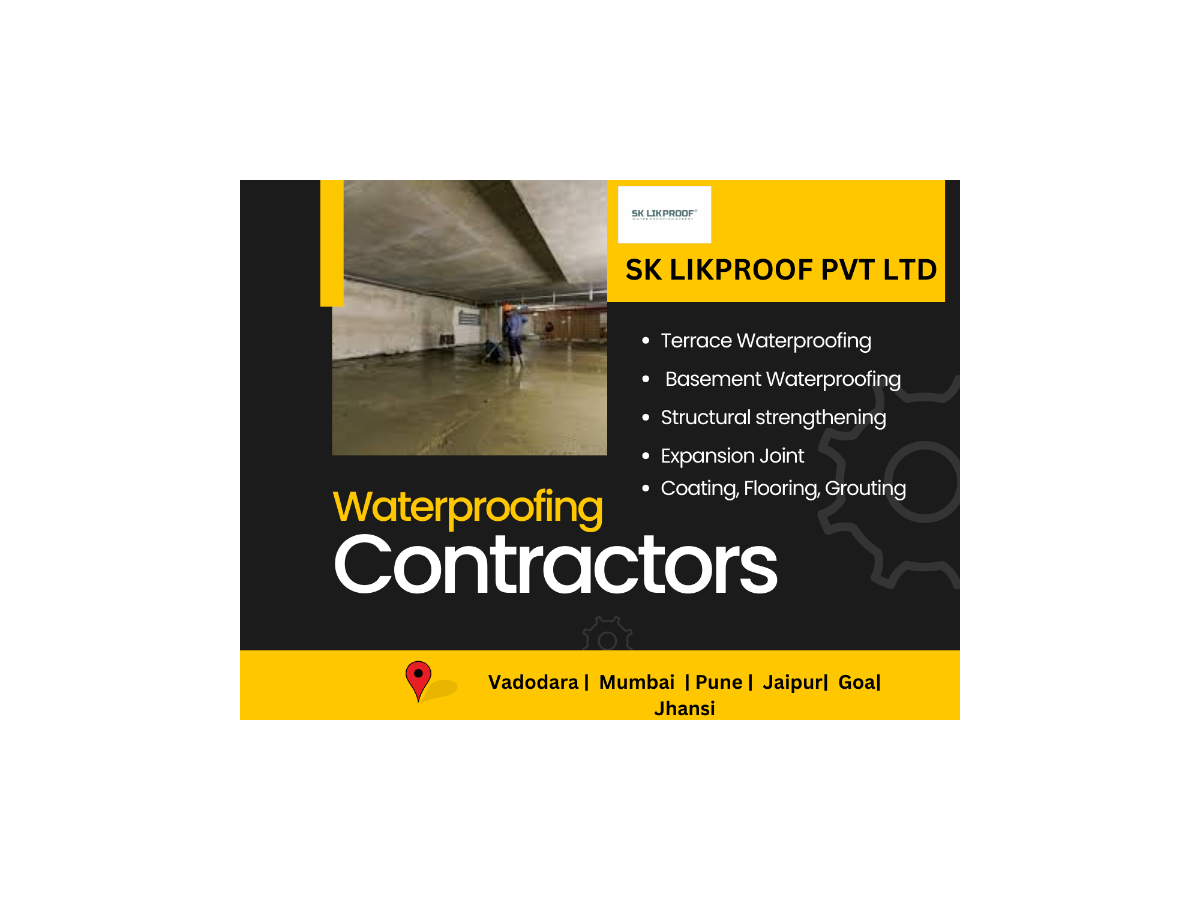 Basement Waterproofing Contractors in Vadodara Searching for trusted basement waterproofing contractors in Vadodara? SK Likproof Pvt Ltd provides professional basement waterproofing and leakage repair services for residential, commercial, and industrial buildings. Our expert team uses advanced techniques like injection grouting, chemical waterproofing, and crack sealing to stop water seepage, dampness, and leakage in basements. We ensure long-lasting protection and structural safety for your property. Protect your basement from water damage with reliable waterproofing solutions. 📞 Contact SK Likproof Pvt Ltd for expert basement waterproofing services in Vadodara.